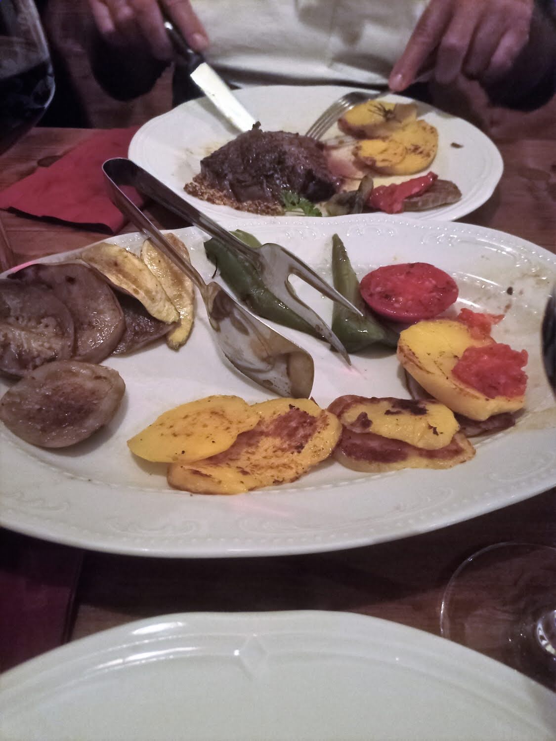 Ensaladas de su huerta, embutidos, verduras a la plancha, una tostada con trufa, un excelente solomillo y de postre tarta y helado. Todo excelente pero haciendo mención especial a una carne que estaba deliciosa. Por supuesto, todo regado con vinos de su bodega y unos licores que nos sacaron tras la cena, también elaborados por ellos mismos.
